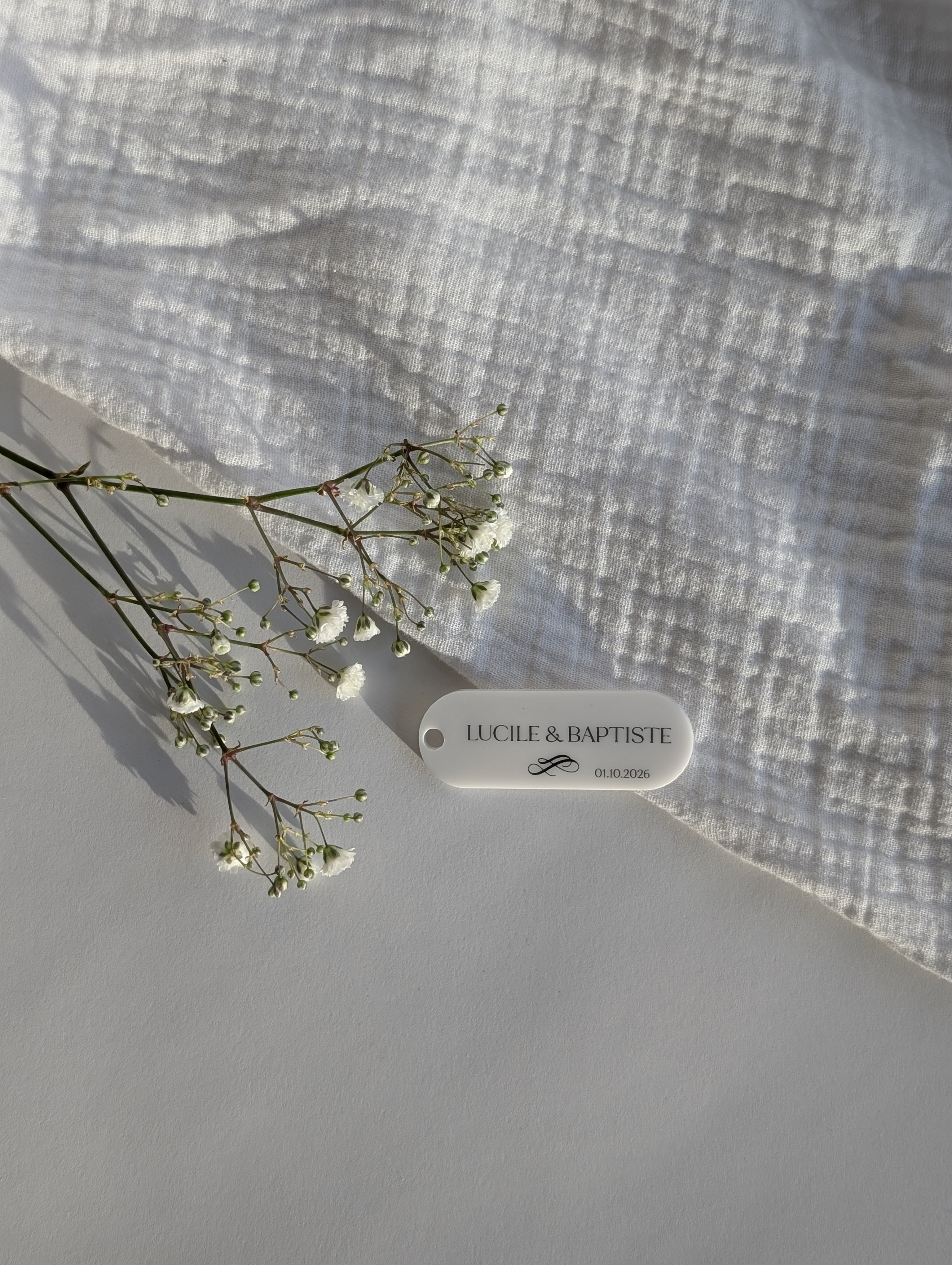 Etiquette personnalisée en plexiglass | Pour cadeaux invités mariage blanc