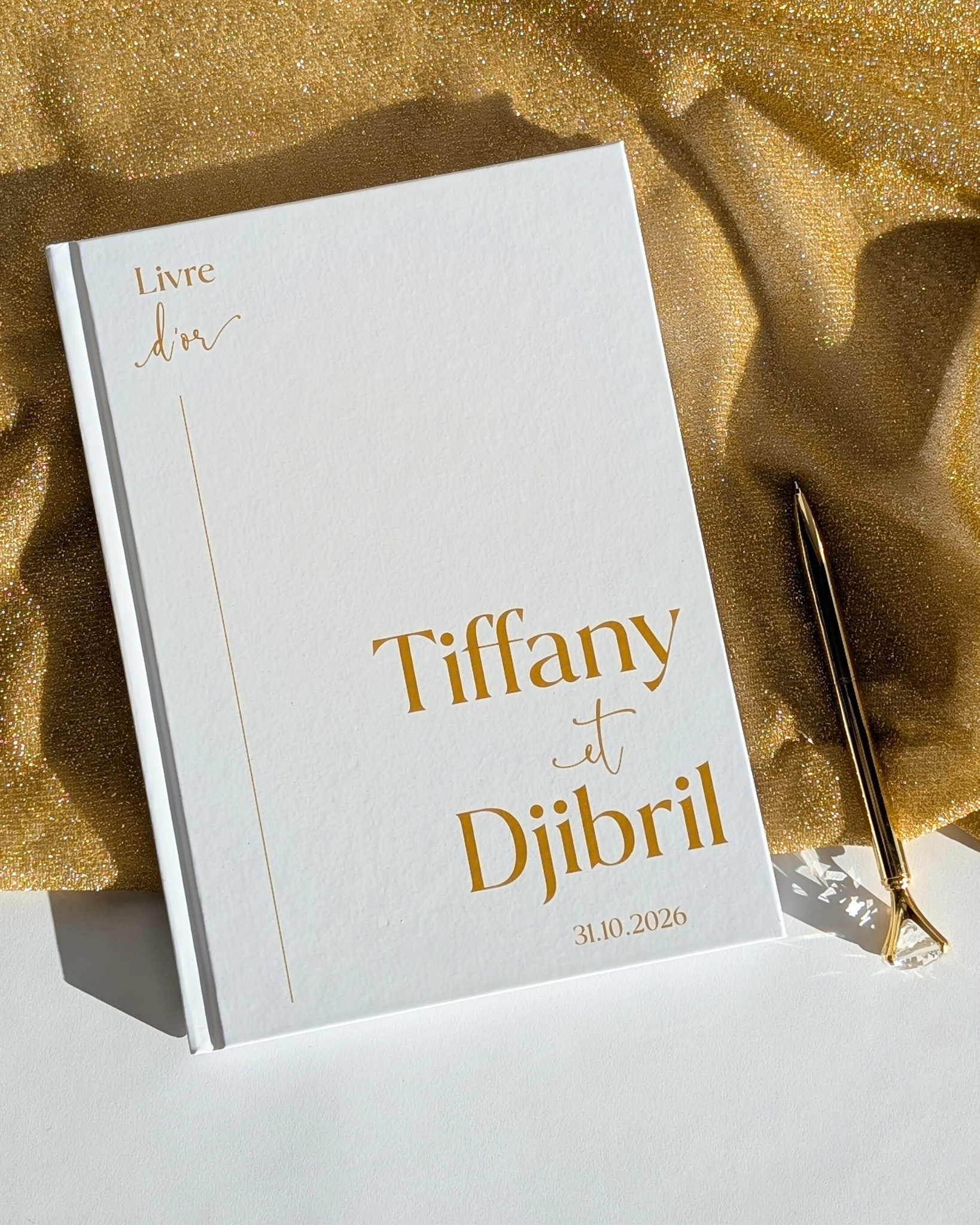 Bon à savoir : Seule la couverture est personnalisable, l'intérieur du livre d'or ne peut pas être personnalisé.