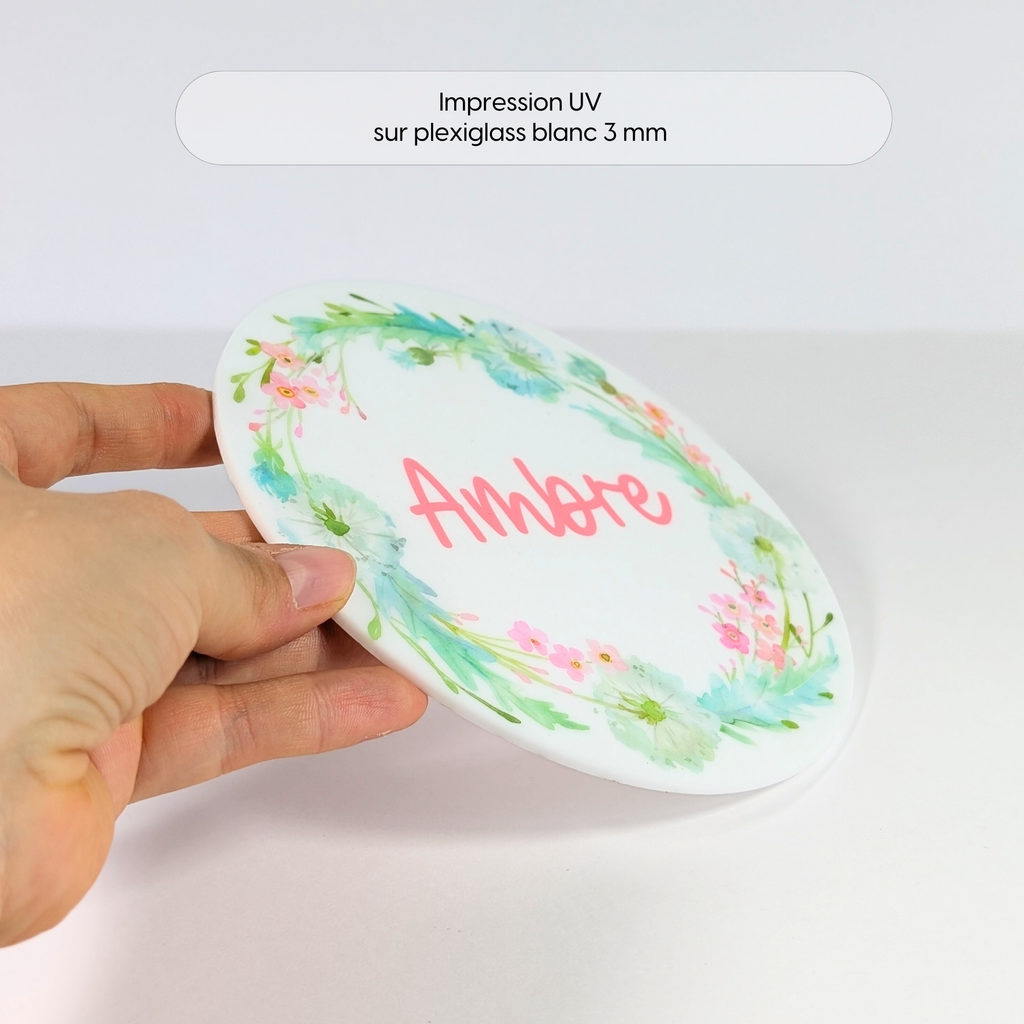 La pancarte est réalisée en plexiglass blanc d'une épaisseur de 3 mm et personnalisée avec une impression UV.